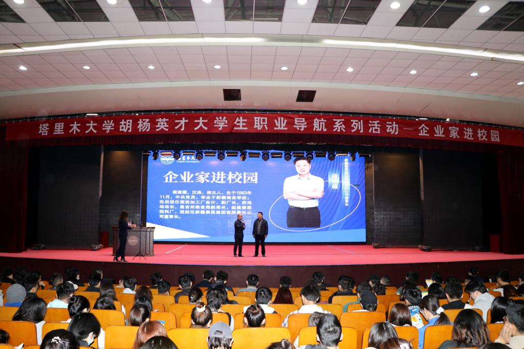 为深入探索校企协同、合作育人的人才培养模式,促进学校师生深入了解企业,帮助学生树立正确的就业观、提升职场竞争力,3月16日,我校招生就业处主办,动物科学与技术学院承办塔里木大学胡杨英才大学生职业导航系列活动——优秀企业家进校园活动。本次活动特邀嘉宾新疆泰昆集团董事长梁建疆为我校学生做了主题为“坚持信念 追逐梦想”专题讲座。动科院、机电院、经管院、生科院1000余名相关专业师生参加。活动由招生就业处处长胡松林主持。