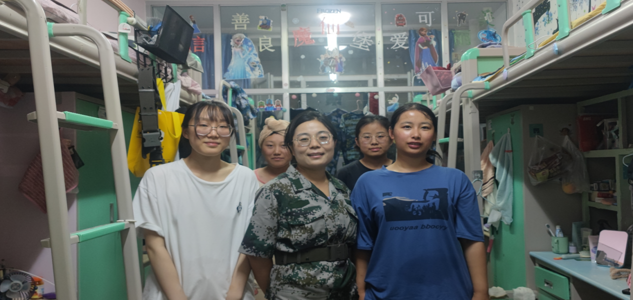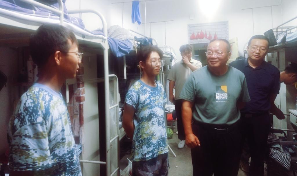 为落实军训育人要求,传递学院的关怀与鼓励,8月25日晚,院党委书记高庆华、副书记魏晓柳,全体辅导员及2022级全体班主任走进学生宿舍看望学生,为同学们送去关怀与问候。