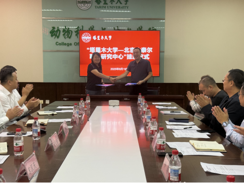 2025年9月19日,塔里木大学动物科学与技术学院与北京生泰尔科技股份有限公司联合研究中心签约暨挂牌仪式在塔里木大学动物科学与技术学院214会议室举行。塔里木大学科研处长倪善强、动物科学与技术学院井波院长、魏晓柳副书记、齐萌副院长,生泰尔科技股份有限公司联合研究中心副总裁王秀敏、资深营销总监马绍航等一行6人以及动物科学与技术学院动物医学系主任及相关教师等参加仪式,仪式由齐萌主持。