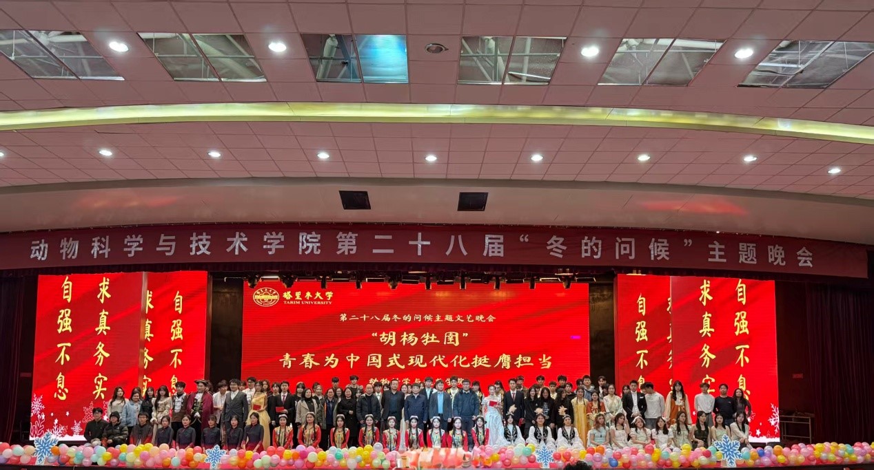 冬夜虽寒,青春炽热。2025年11月29日晚,塔里木大学动物科学与技术学院第二十八届“冬的问候”主题晚会在校本部文科楼B座报告厅举行。晚会以“青春为中国式现代化挺膺担当”为主题,学院党委书记梁国杰,泰昆集团阿拉尔公司副总经理张永飞,学院党委副书记、纪委书记魏晓柳,受邀嘉宾及900余名师生共同观看了演出,共赏青春风采。