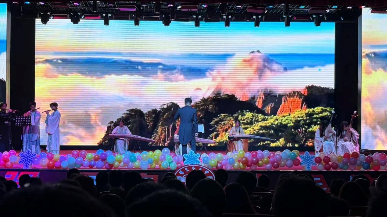 第二篇章“墨韵青春•国风雅集”让观众感受中华传统文化魅力。《浮光》《光亮》舞姿优美、意境悠远;歌曲串烧深情,传递家国情怀与青春担当;武术表演《舞动九州》刚柔并济、气势磅礴,获阵阵喝彩。