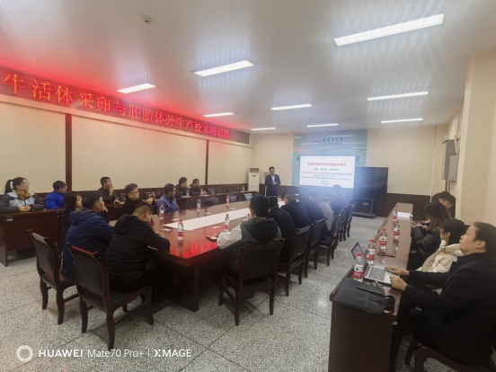 在理论学习环节,学员们系统学习了肉牛生殖生理周期与内分泌激素调控机制,为后续技术应用奠定了坚实的理论基础。培训重点围绕活体采卵(OPU)与胚胎体外生产(IVP)两大核心技术展开,详细讲解了OPU的技术原理、操作流程与注意事项,以及IVP技术中的卵母细胞体外成熟、体外受精、胚胎培养等关键要点。此外,课程还对胚胎移植技术的实际应用与产业发展前景进行了深入剖析。