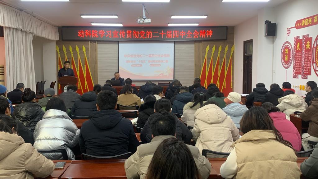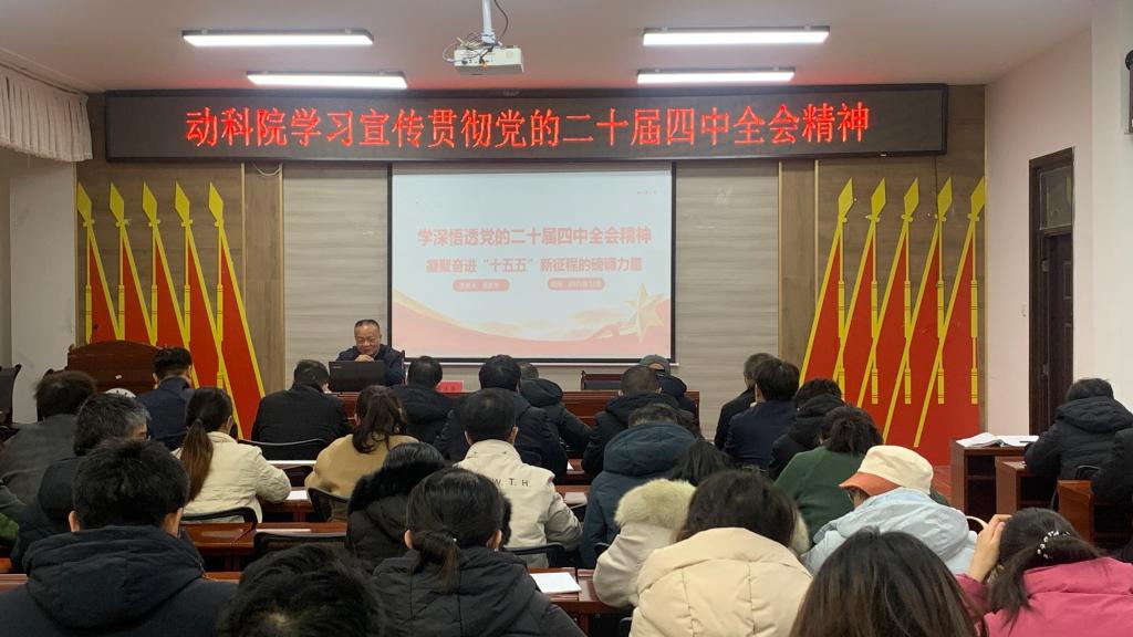 按照学校党委统一部署,12月11日下午,学校党委常委、统战部长高庆华到动物科学与技术学院为师生宣讲党的二十届四中全会精神。学院领导、师生代表听取宣讲报告。宣讲会在动科楼318会议室举行,由学院党委书记梁国杰主持。