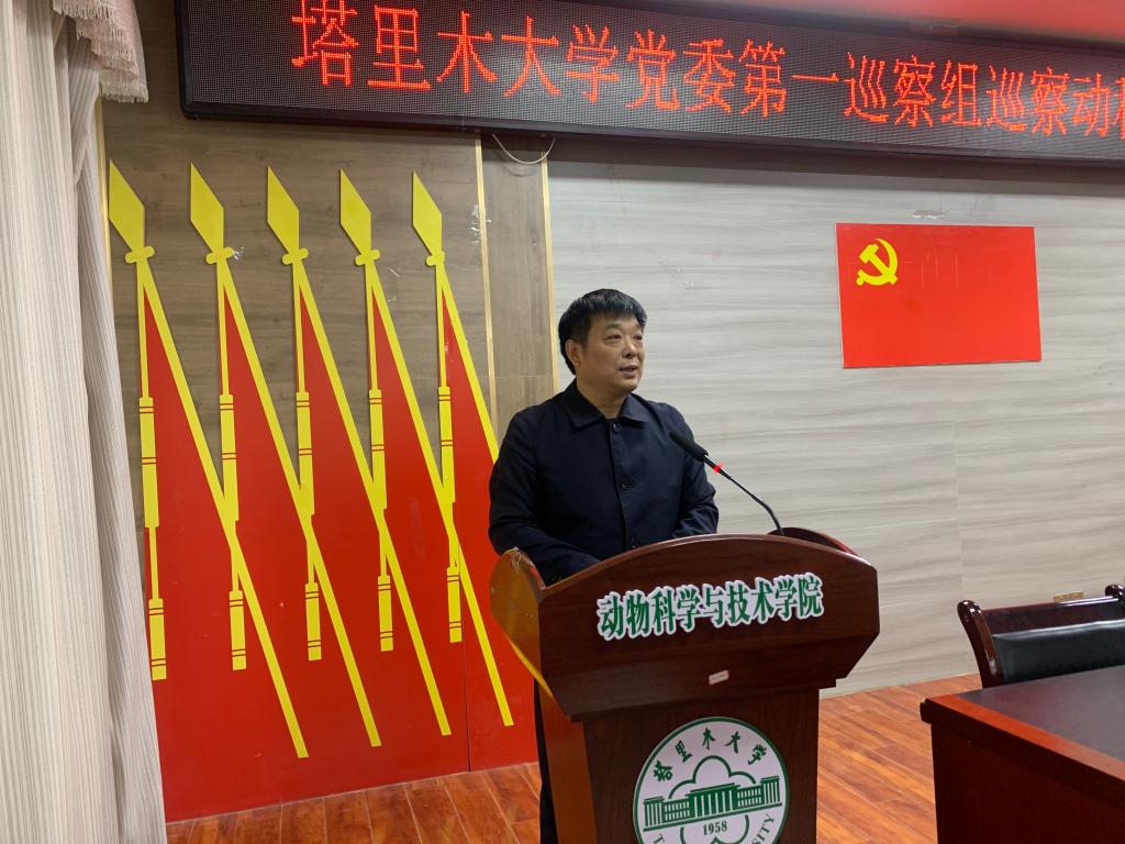 梁国杰做表态发言,对于巡察组反馈的所有问题,学院党委诚恳接受,照单全收,没有任何异议,并将以严肃认真的态度、坚决果断的行动抓好整改落实,推动动物科学与技术学院事业高质量发展,为学校建设兵团特点南疆特色一流大学交上一份满意答卷。