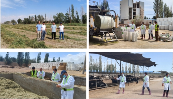 2024年6月4日,新疆奶产业技术体系专家王连群副教授,优质饲草产业技术体系副首席席琳乔教授,动物科学与技术学院刘利林教授、玄荣博士一行4人赴第一师五团新农牧业一牧场开展技术服务。