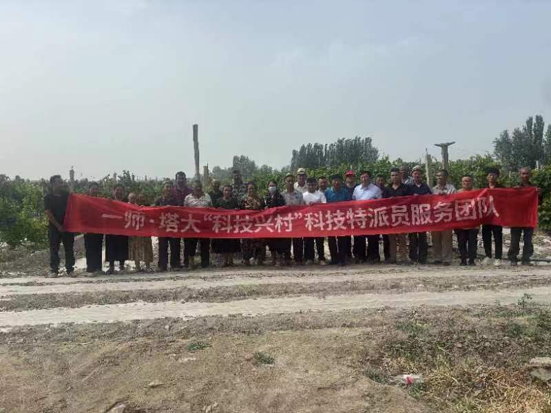 2024年6月7日,一师塔里木大学与农科所科技特派员高进东、吴向东、桑玉伟邀请塔里木大学果树专家程奇老师和吉林大学动物医学教授申海清教授及塔里木大学研究生艾买尔,来到阿克苏地区一师一团连队共建村开展科技服务活动。
