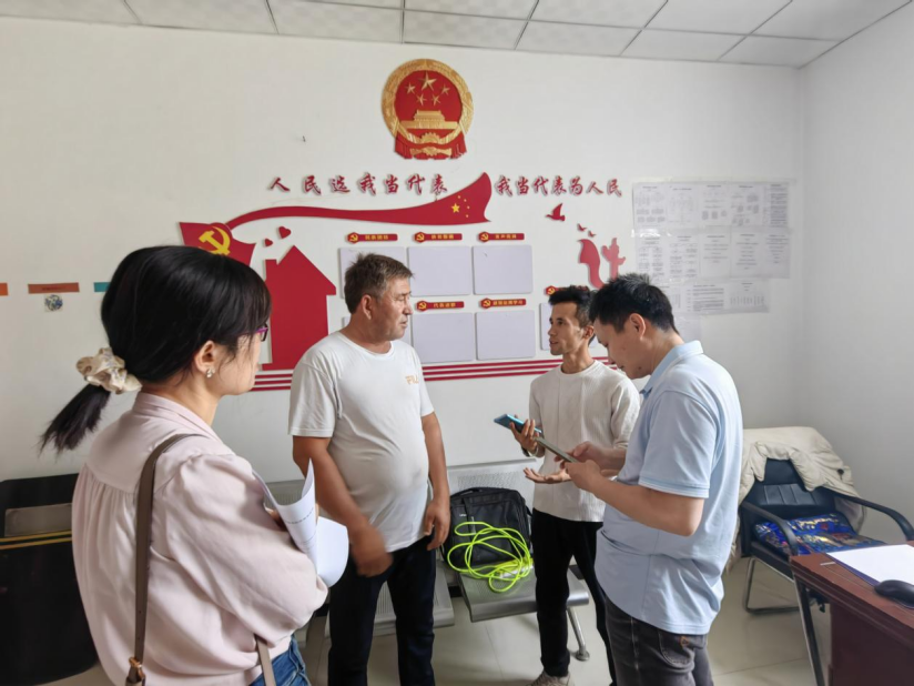 在阿依库勒镇萨伊买里村,高进东博士负责的科技兴村点,一行人跟该村工作人员交流展示过往科技服务的成果,同时对下半年的需求进行了深入交流,更好地服务广大村民。