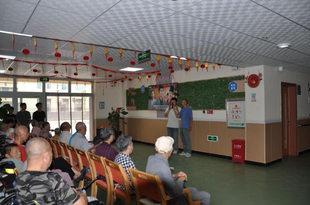 王连群老师与三下乡团队学生张禹权耐心地教授敬老院老人们手指操,并讲解科学饮奶知识,希望通过健康知识的传播来守护每一位老人的健康。(文/张禹权 尹豪 摄/刘宇珂)