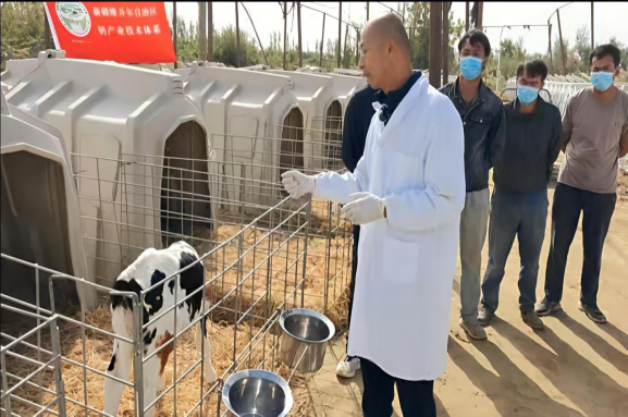 2025年9月26日,塔里木大学教师兼新疆奶产业技术体系阿拉尔市综合试验站王连群团队赴新疆托峰冰川牧业有限公司一牧场开展科技培训工作,团队专家深入牧场犊牛养殖一线,结合奶牛养殖环节犊牛培育的难点和痛点,重点传授了现代化规模牧场犊牛标准化饲养管理经验和技术,从新生犊牛的护理到初乳的饲喂,从哺乳期犊牛的饲养管理到断奶犊牛的饲养管理,耐心细致为技术人员传播技能技巧。此次科技培训通过线上线下同时进行的方式开展,受到了全疆奶牛养殖技术人员的较高评价。