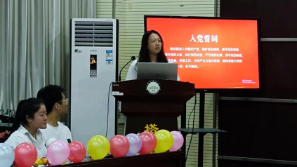 活动最后,研究生党支部书记芮雪带领全体党员重温入党誓词,党旗下的铮铮誓言,是党员们的庄重承诺,这也激励毕业生党员们永葆入党初心,牢记党员身份,也是提醒同志们要肩负起新时代的重任,在新的人生道路也要充分发挥共产党员的先锋模范作用。