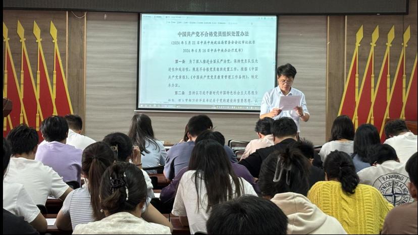齐萌首先传达了上级党组织关于学习贯彻《中国共产党不合格党员组织处置办法》的指示精神,强调了该办法对于加强党的建设、严肃党内政治生活的重要性,全体党员必须深入理解该办法的内涵和要求,自觉遵守党的纪律,维护党的形象,随后详细解读了《中国共产党不合格党员组织处置办法》的主要内容和实施细则,从不合格党员的认定标准、处置程序、教育帮扶等方面进行了深入讲解。