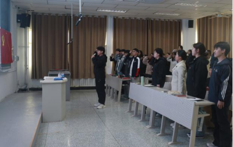 大会在庄严的国歌声中拉开序幕。会上,27名入党积极分子依次上台,分享了对党的深刻认识、真挚的入党动机及个人成长感悟。作为代表,动物科学2024级1班李路虎同学郑重承诺,未来将以更高标准严格要求自己,努力成为一名爱国爱疆、担当奉献的新时代“胡杨学子”。