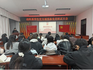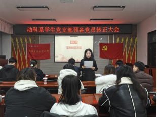 2025年10月31日,动科系学生党支部在动科楼318召开预备党员转正大会。支部书记姚亚玲、副书记王式琴和支部全体党员出席会议,会议由高帅同志主持。