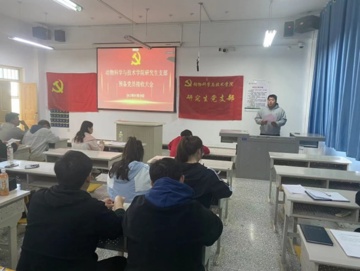 发展新力量,注入新血液。2023年5月10日,动物科学与技术学院研究生党支部在综合楼323教室开展政治学习活动暨2023年上半年入党积极分子接收大会和预备党员接收大会,本次会议以线上线下结合的方式开展,由支部委员啜力文同志主持。