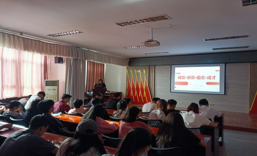 为加强对学生的诚信、感恩、励志和成才教育,引导学生远离不良贷套路贷,珍爱信用,理性消费,增强学生的诚信意识、风险意识和感恩意识,培养以德立身,明礼诚信、自强不息的新时代大学生,同时为大力宣传国家资助政策,展现资助育人成效,动物科学2020级5班于2023年5月14日18:30,在动科楼318举行了“诚信·感恩·励志·成才”主题班会活动。现场由班长孙君卓同学主持,动科20级5班全体成员参与。