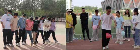 图书大楼前的拍照留念,考验合作精神的“两人三足”,不忘入党初心的“我与党旗合个影”,温暖欢快的“抱团游戏”,反应敏捷的“心口不一”……一个个卡点活动,让大家的情谊更加深厚,在坏解压力之余也让毕业生们更加深刻地感受到校园生活的美好。