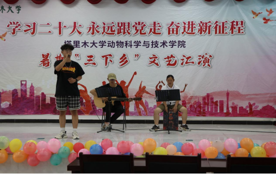 7月6日,塔里木大学动物科学与技术学院40余名师生赴第一师七团一连开展“学习二十大,永远跟党走,奋进新征程”暑期“三下乡”文艺汇演活动,七团一连连长郜宁,墩买里村第一书记黄位勇,动科院院团委书记李娴、辅导员王式琴共同观看了此次演出。