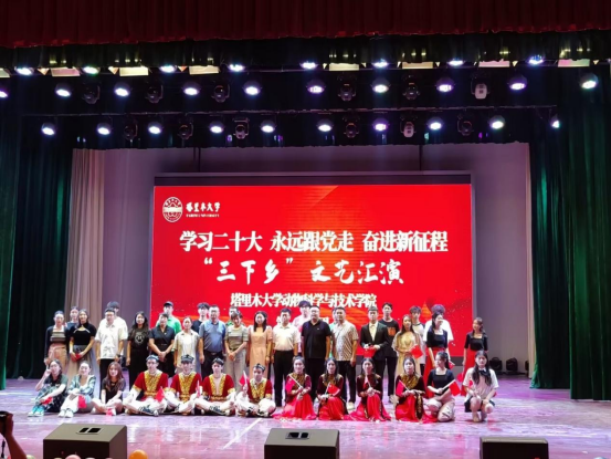 为大力推进兵团精神文明建设,满足广大职工的精神文化生活需求,7月7日,动物科学与技术学院“学习二十大,永远跟党走,奋进新时代”文艺下乡实践团来到了美丽的新疆生产建设兵团第一师七团开展了文艺汇演活动,兵团团委副书记高妍,塔里木大学团委书记常海亮,七团党委副书记、副政委张小云等领导观看了演出。