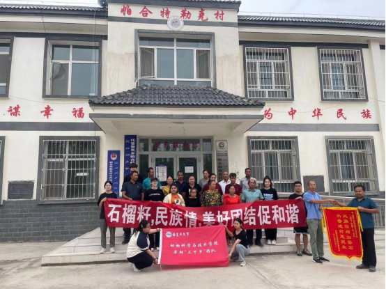 (图为“石榴籽,民族情”三下乡团队与当地村民的合影)