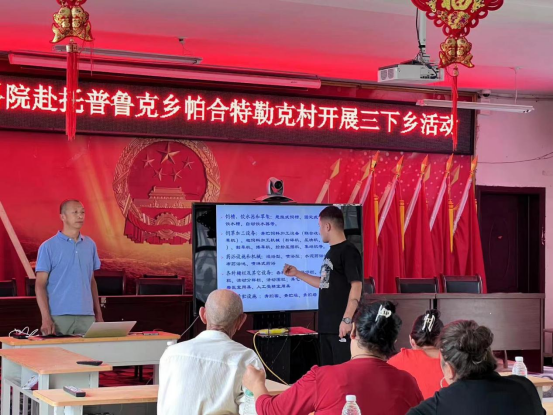 宣讲过程当中,不少村民也是积极的认真提问,老师也是结合实际为大家进行解答,各位同学也是积极为大家服务,从养殖的各个方面的问题来着手实际。