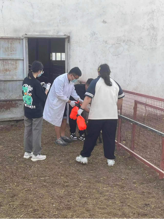 在老师和学长们的教授下,同学们开始尝试去上手进行药浴,虽然有充分的理论知识作为依据但是第一次上手依旧是有些害怕,这应该就是常说的脑子懂了手不懂吧,在最后同学们在工作人员的帮助束缚羊的情况下,成功对其进行了药浴,虽然过程极具挑战性但是最后他们都表示药浴很有趣也很有意义。