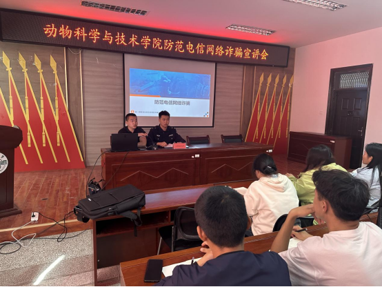 为筑牢学生防诈骗意识,提高反诈骗能力,积极落实预防电信网络照片宣传教育工作,10月22日下午,动物科学与技术学院联合第一师阿拉尔市公安局大学路派出所在动科楼318会议室组织开展防范电信网络诈骗宣讲会。本次活动邀请三位反诈民警进行有关电信诈骗知识的宣讲,动物科学与技术学院100名班级反诈员参与线下培训,各班级共计1700余人线上同步进行学习。