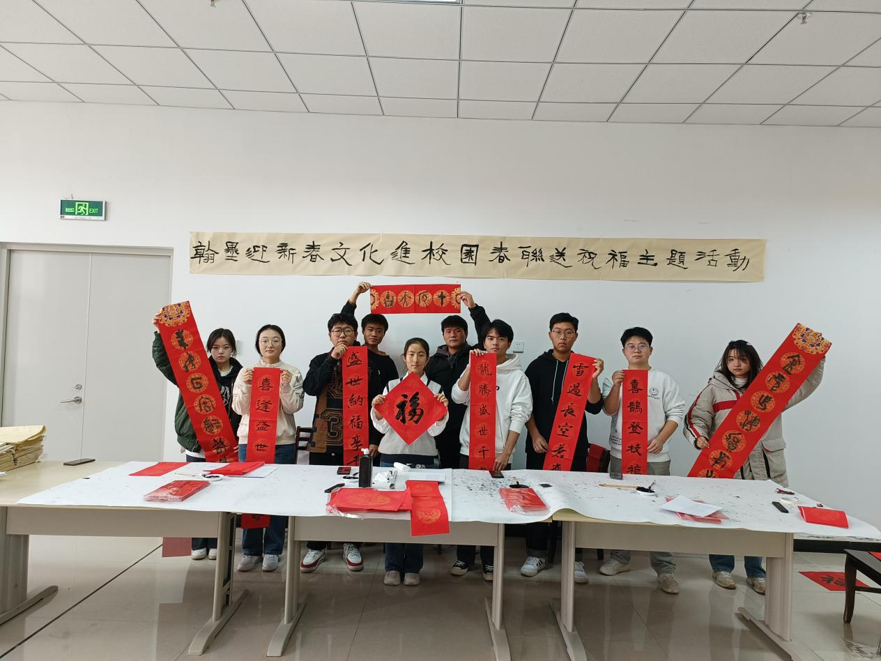 冬日暖阳,翰墨飘香。本次活动创作并为学院师生送出春联300余对、福字200余张。让学院师生感受到了传统文化的魅力,在陶冶情操之余,也带着浓浓的祝福满载而归。后期,学院团委将持续同师市文联、书法家协会加强沟通,助力文化社团发展,持续开展相关传统文化活动。(文/李 旻 张博远 宋雨晴,摄/马格琳 刘若水 薛雅楠)